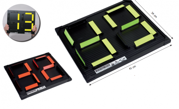 Tabla koja omogućuje jasniju izmjenu igrača, rotacijski sustav brojeva u fluorescentnim bojama. Idealno pomagalo  klubova.